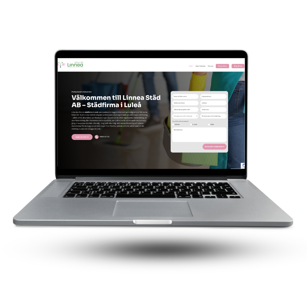 Att kunna leverera moderna och fungerande lösningar inom webb, design & grafik till serviceföretag i Hela Sverige. Vi arbetar med wordpress och använder olika kraftfulla teman såsom Divi, Hello Elementor & Breakdance. Genom vår expertis tillhandahåller vi lösningar som får dig att synas, konverterar besökare till kunder och ger dig de bästa förutsättningarna för den digitala arenan. Allt till konkurrenskraftiga priser för att säkerställa tillgänglighet för alla olika branscher. Redan idag arbetar vi med flera Städföretag, Byggföretag, Markarbetare och många andra. Vi utgår från Göteborg men arbetar rikstäckande i Hela Sverige. Är du intresserad av hur vi kan hjälpa dig nå dina mål ute på nätet? Boka ett kostnadsfritt möte med oss.